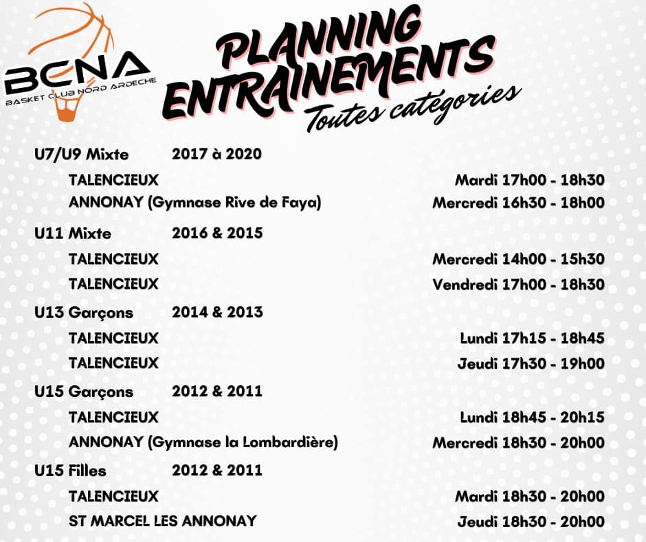 PLANNING HEBDOMADAIRE ENTRAINEMENT